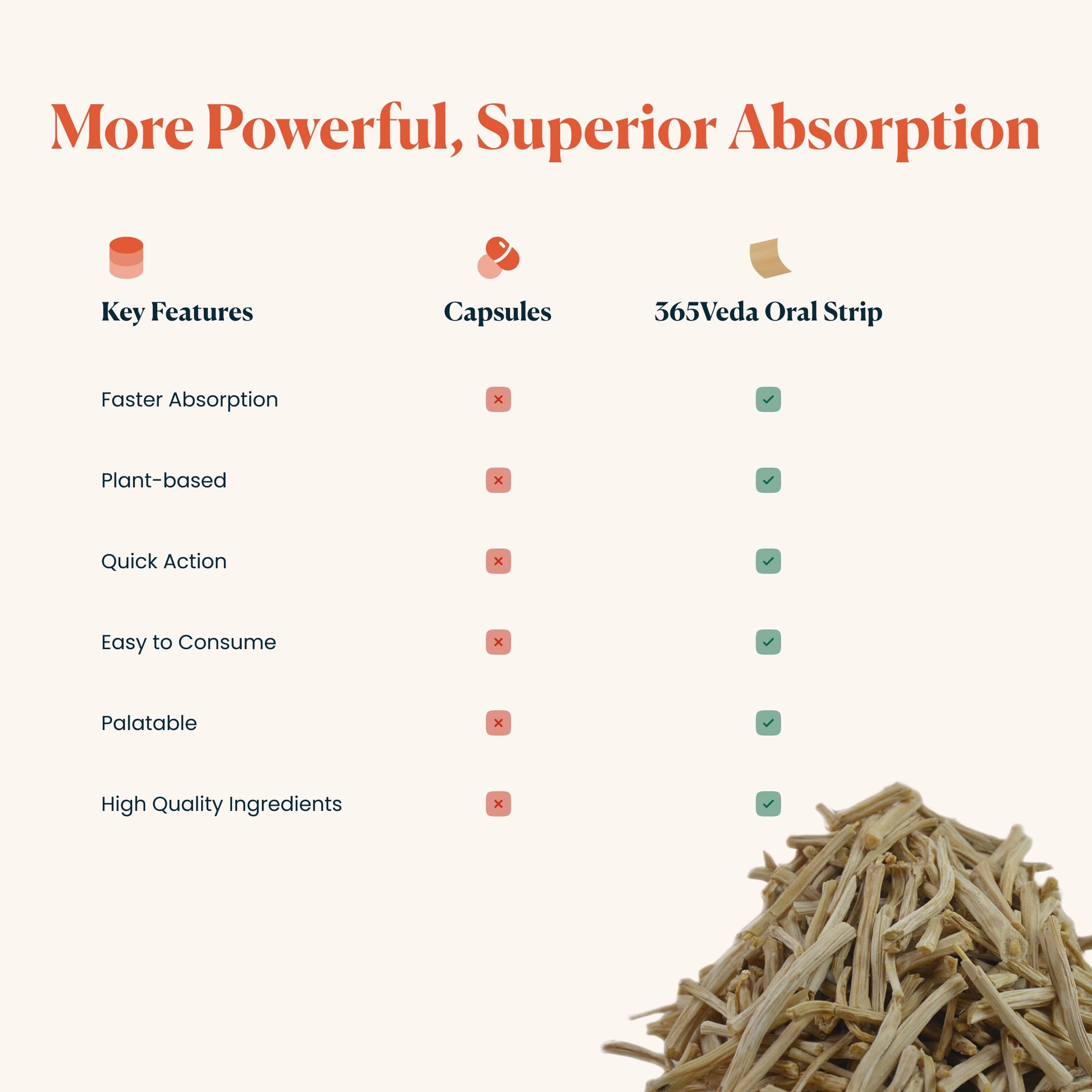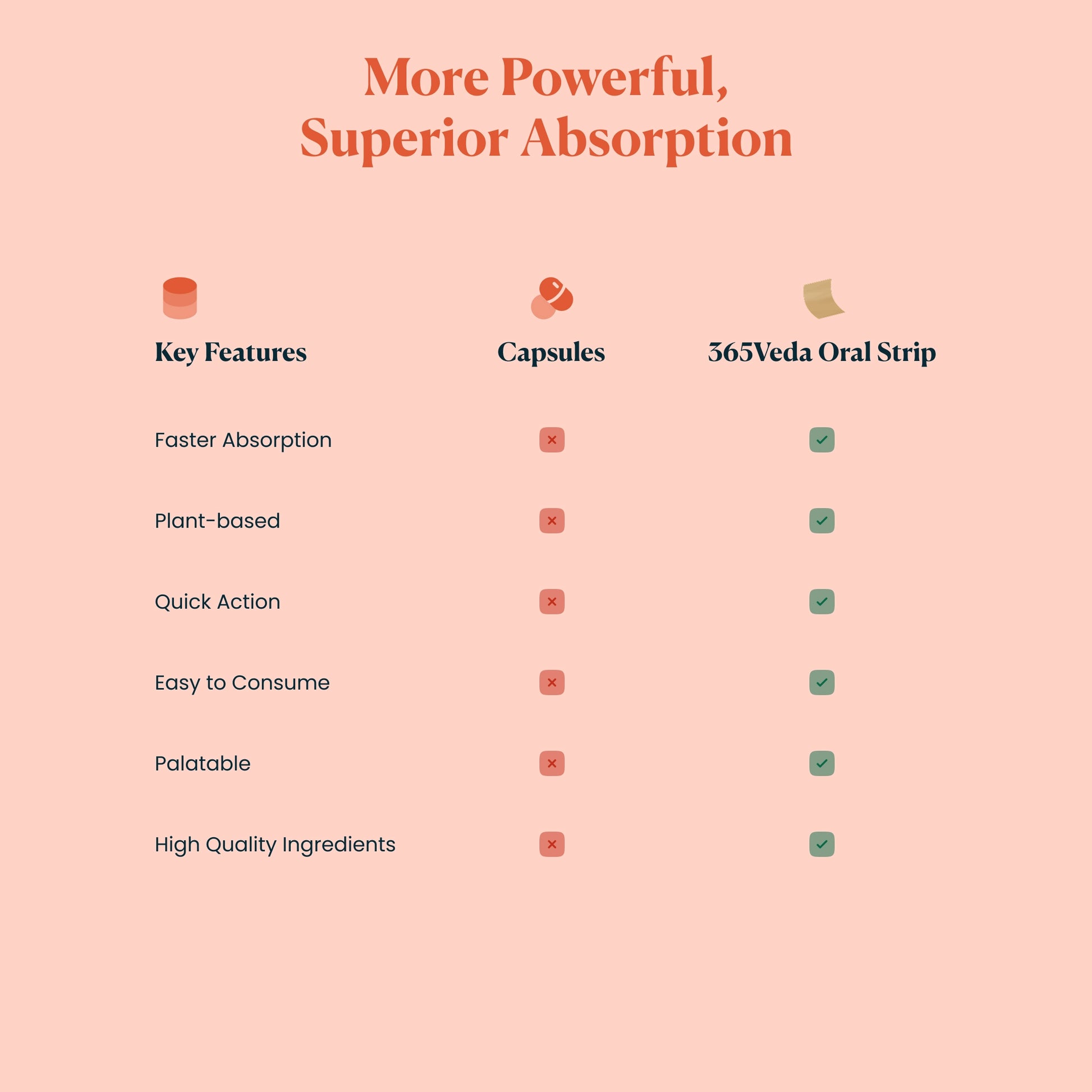 365veda oral strips dissolve on your tongue and deliver nutrients straight into your bloodstream—bypassing digestion for faster, more reliable absorption.