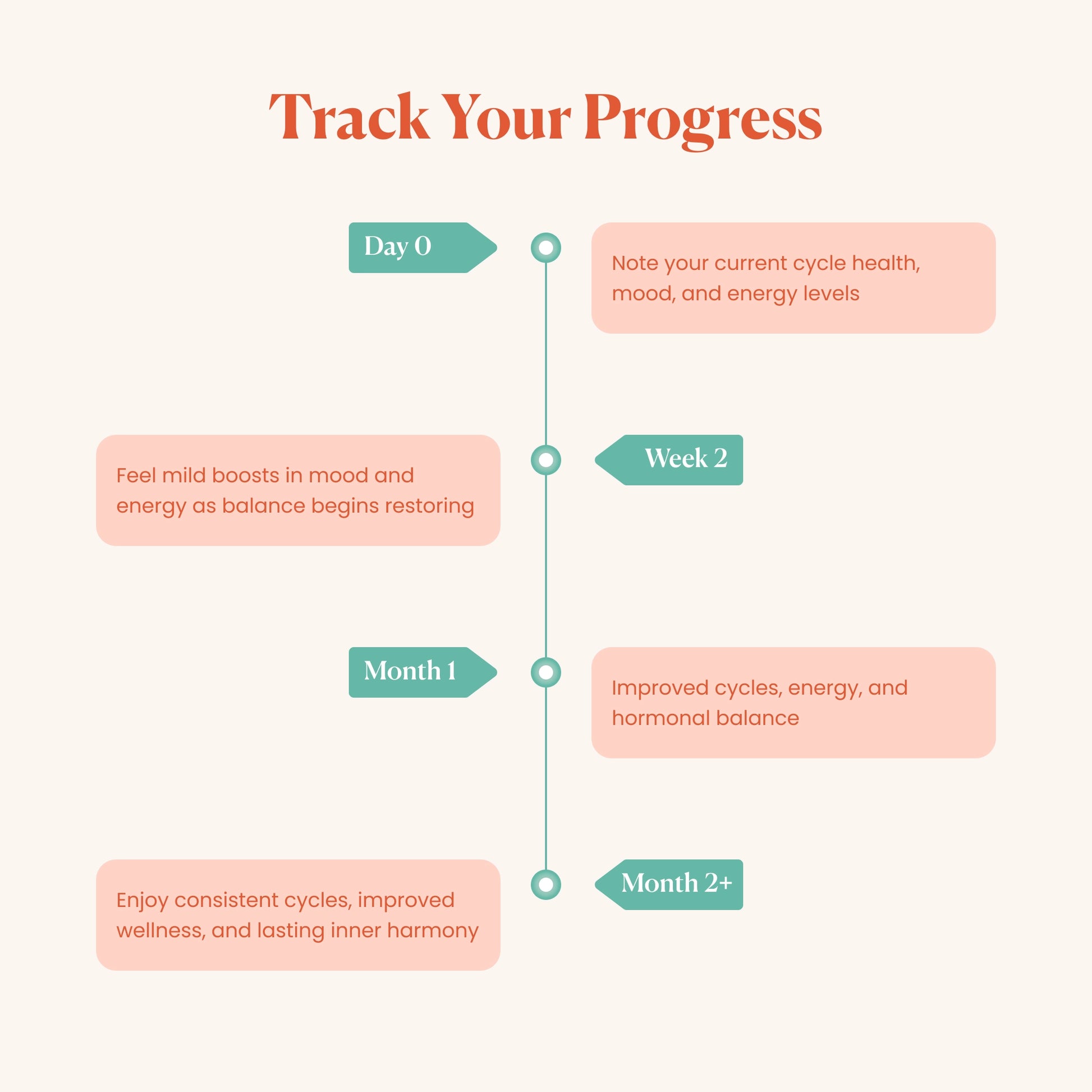 Some women notice subtle improvements in energy, mood, and comfort within 2–4 weeks. Support for cycle regularity and ovulation generally builds over 2–3 months of consistent use.