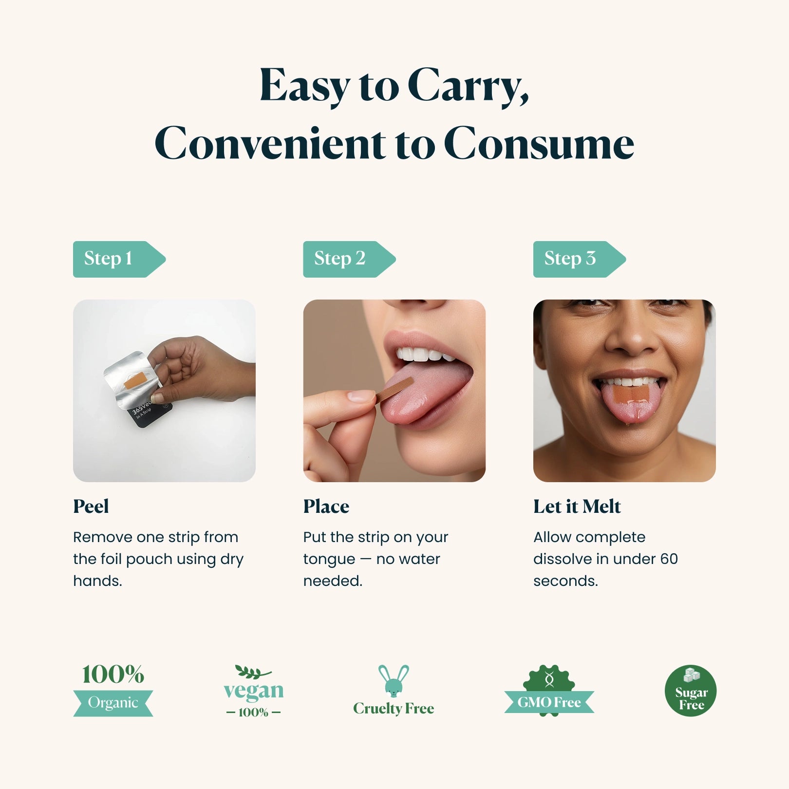 365veda oral strips dissolve on your tongue and deliver nutrients straight into your bloodstream—bypassing digestion for faster, more reliable absorption.